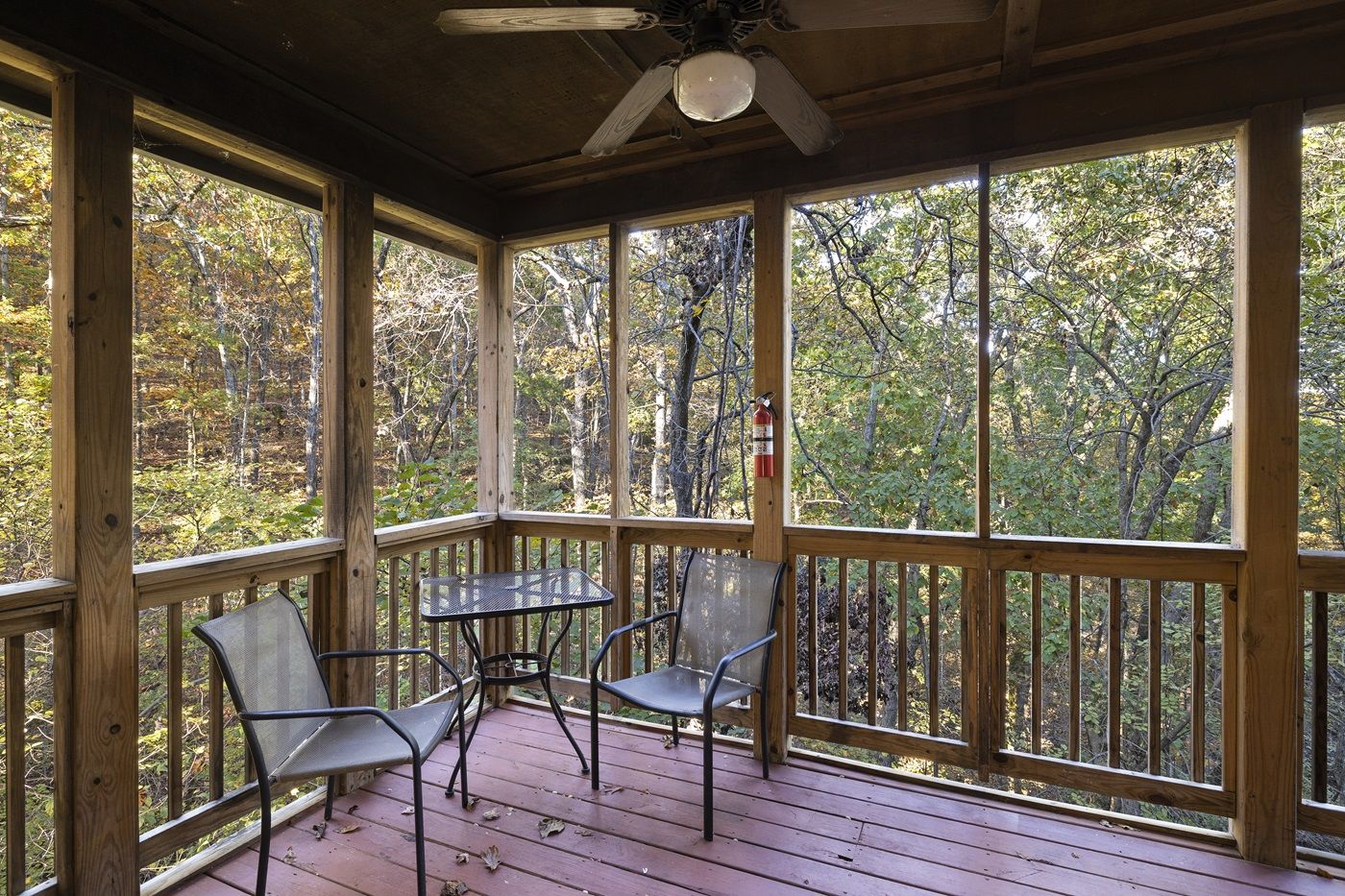 The covered deck off the kitchen includes a gas grill and table for dining outside, while the screened porch directly below gives more opportunities to step outside for some fresh mountain air or enjoy a steamy cup of coffee while admiring the views. The generous outdoor space is a great way to explore the Ozark foliage with yard games or a game of catch. At night, you can enjoy the private hot tub, and you'll find no shortage of entertainment in the downstairs game room; a fun-filled space with a pool table, air hockey, foosball, darts, board games, fireplace, and TV.